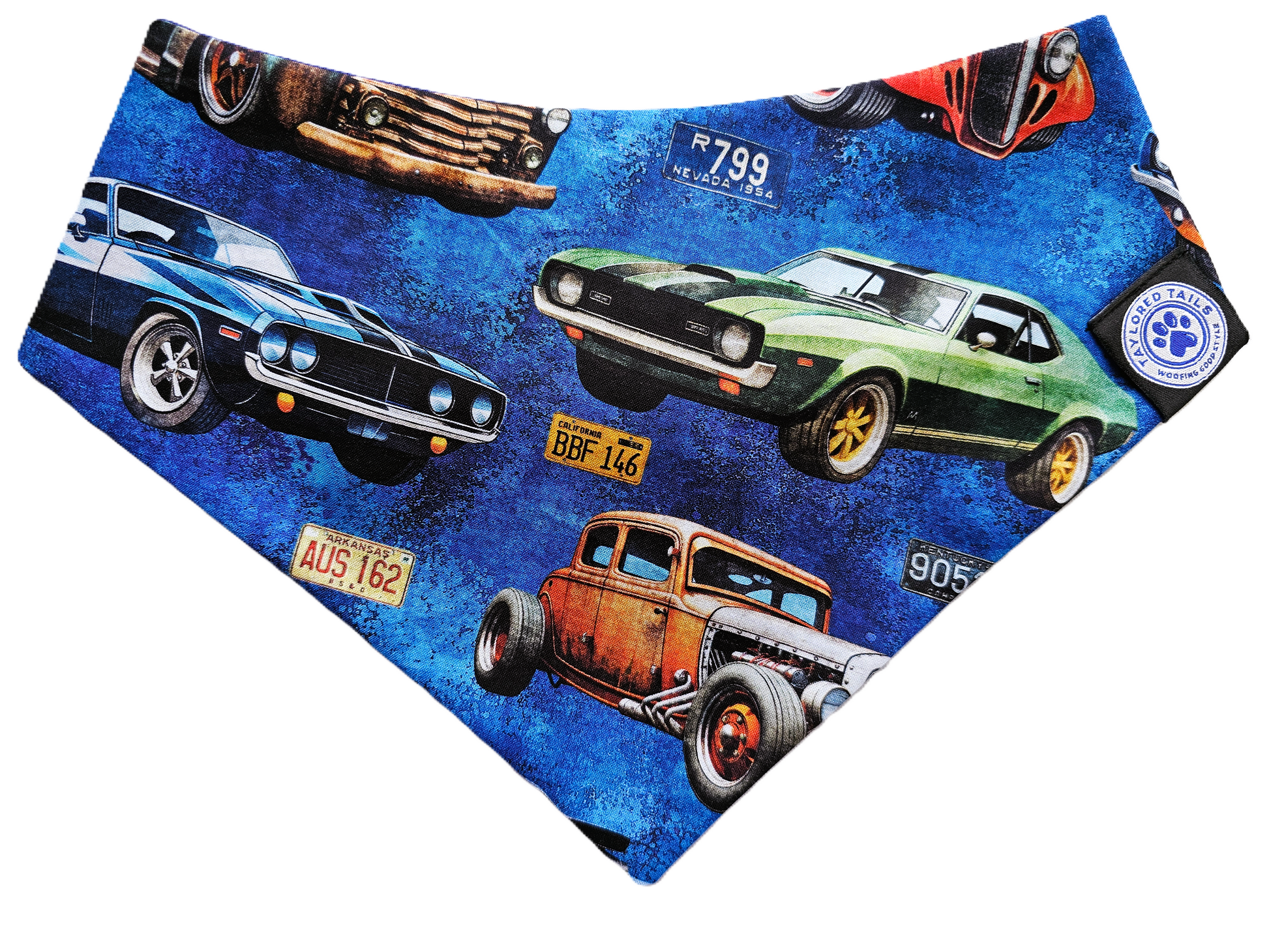 Rev up your pup's style with our Wicked Hot Rods Dog Bandana! Made in NZ by Taylored Tails, this bandana will have your furry friend looking cool and ready to hit the road. The Velcro fastening ensures a secure fit. Get your dog's motor running with this bold and adventurous accessory!