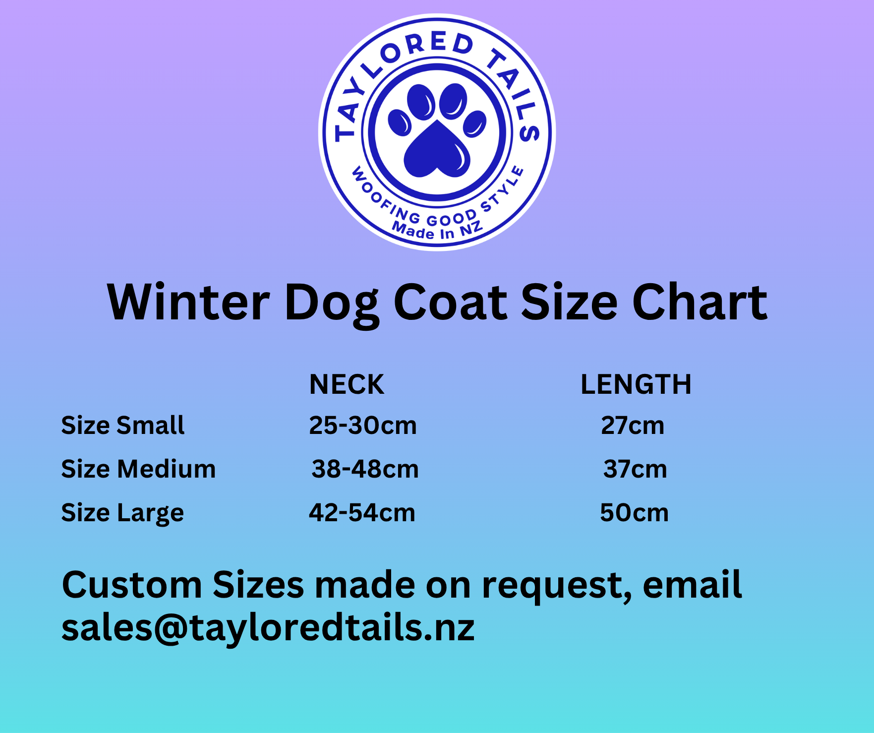 For custom sizing, reach out to sales@tayloredtails.nz and give your pet the warmth they deserve.